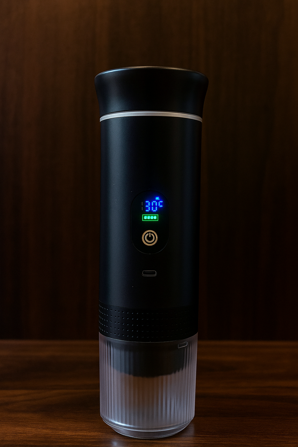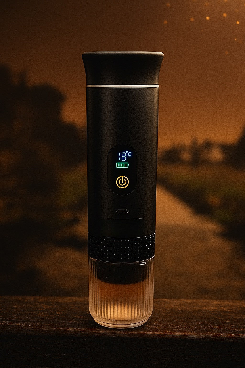 Die Portable Kaffeemaschine von Rovira vereint Stil und Funktion: Sie erhitzt Wasser selbstständig, ist kompatibel mit kleinen & großen Kapseln sowie gemahlenem Kaffee und zeigt Temperatur & Akku elegant auf dem LED-Display. Dank der kompakten Bauweise ist sie dein perfekter Begleiter und macht jeden Moment zu einem echten Kaffe Erlebnis.